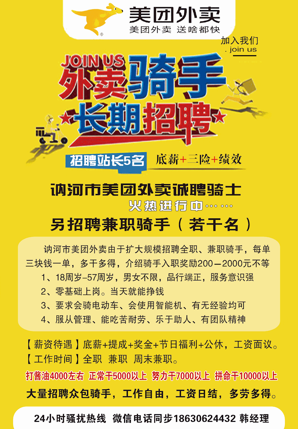 ✔讷河饿了么外卖平台招聘兼职: