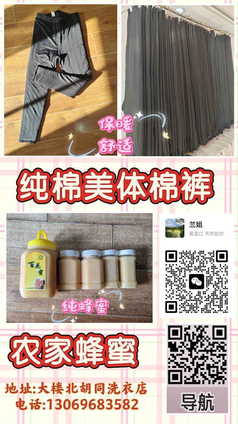 纯棉花美体棉裤,保暖,舒适。地址:大楼北胡同水洗店 电话:13069683582