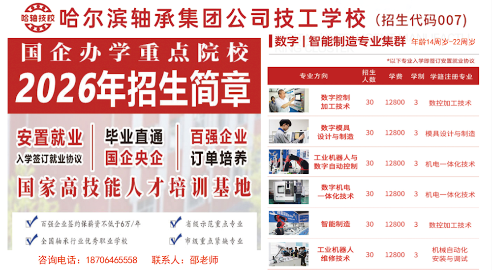 哈尔滨轴承集团公司技工学校招生(有图)