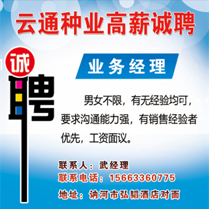 薪资待遇:底薪+高提成+年终奖,底薪3000-6000元。 三、另招乡村经纪人若干名 财富热线:15845235123 15845236487 地址:讷河市二校东50米路北华屿种业有限公司